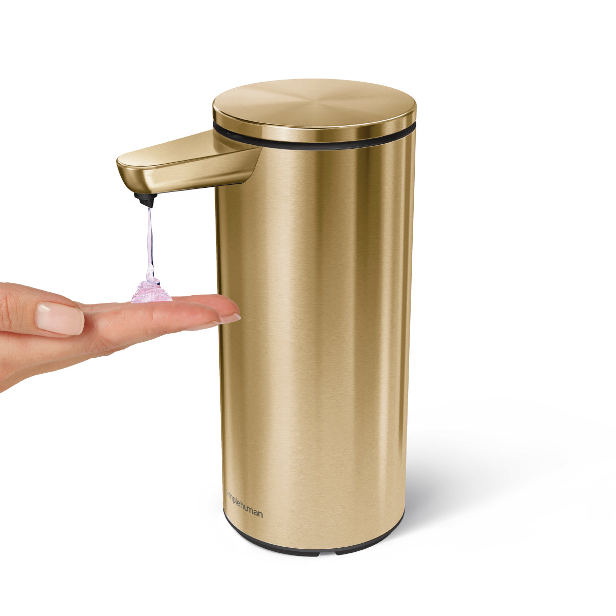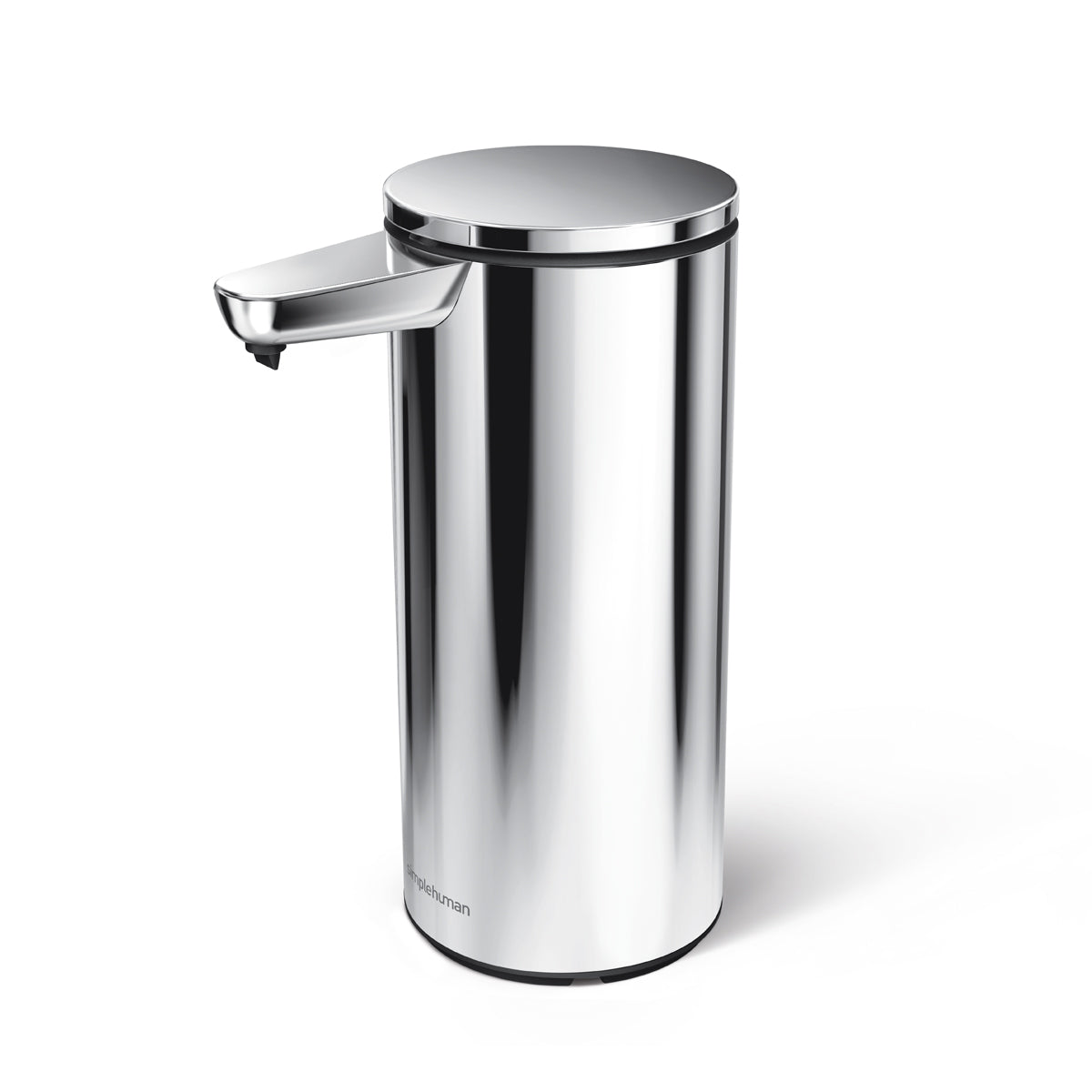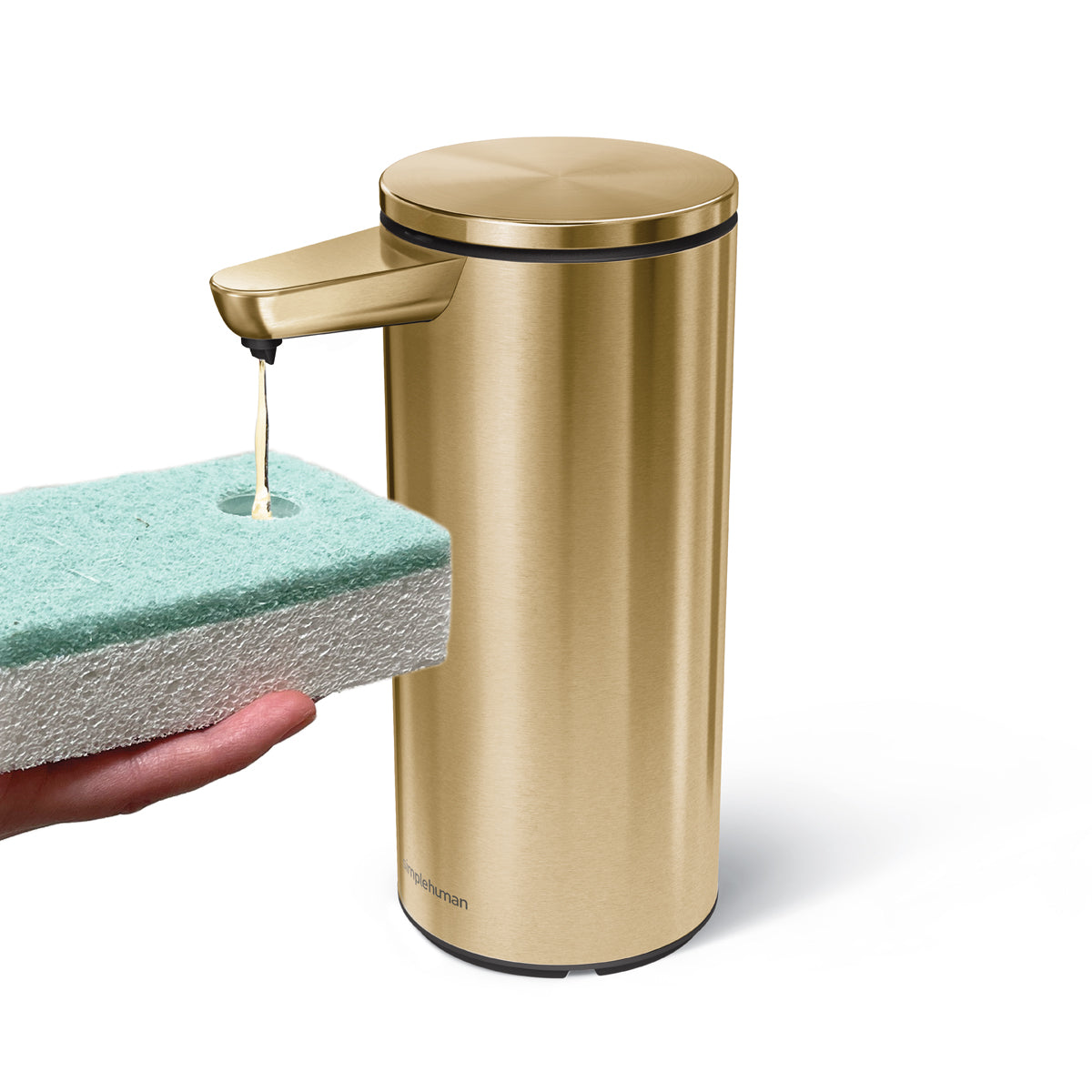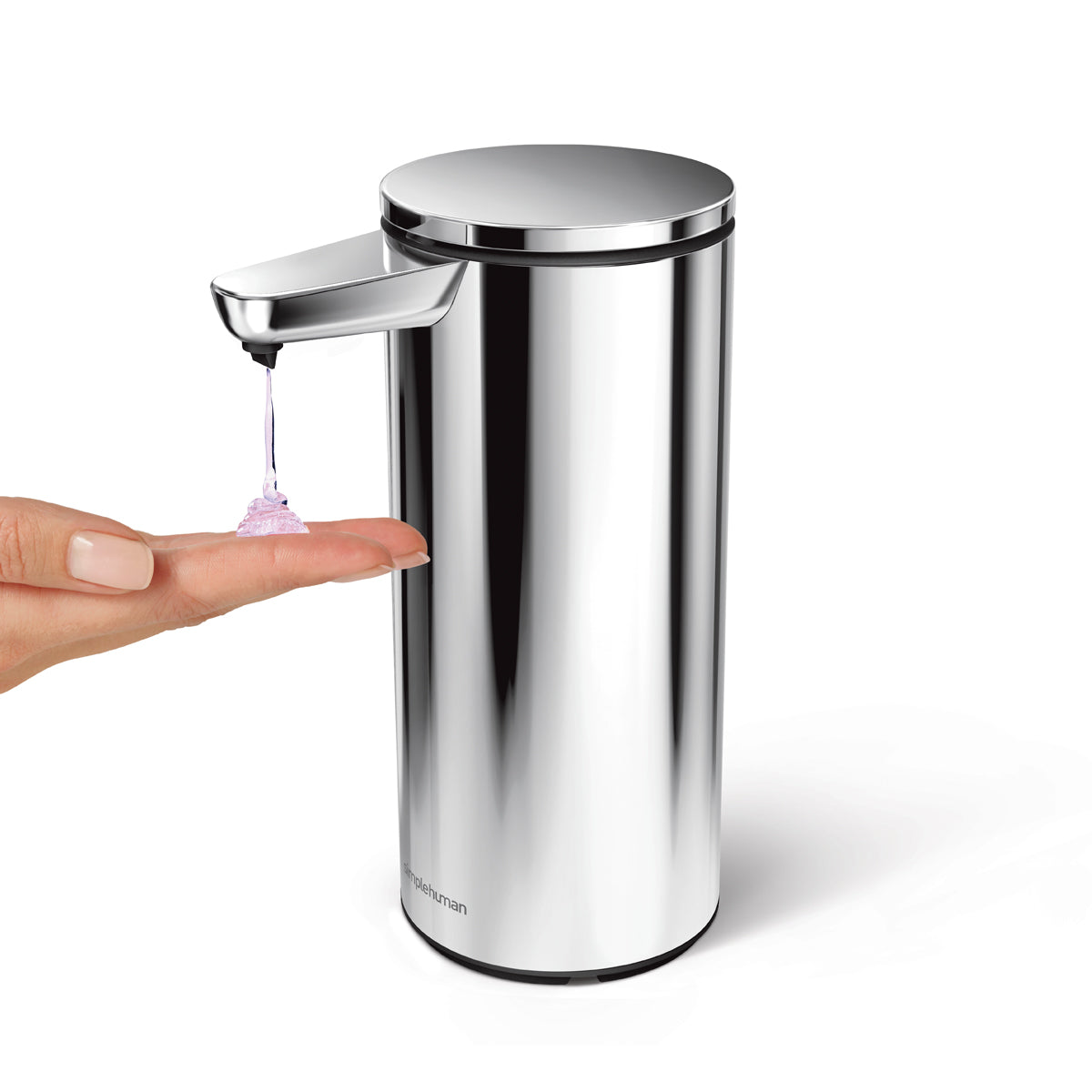 The perfect tool for dispensing soap touch-free without leaving germs behind. Holds 50% more soap than our standard pump so you'll refill less often. Clog-proof tubing pump ensures a precise and consistent flow, and the silicone valve prevents messy drips. To control the amount of soap desired, you can position your hand up close to the sensor for a little soap and farther away for more. A wide refill opening makes refills fast and easy, and there's a QR code under the lid so you can reorder soap in a flash. It's also waterproof for easy cleaning. Rechargeable with included wireless charger — and one charge lasts up to 8 months. Use simplehuman soap for optimum pump performance. Also works with hand sanitizer. Available dual sponge caddy perfectly fits two pumps — one for hand soap and one for dish soap — and stores a sponge so it's always at your fingertips.