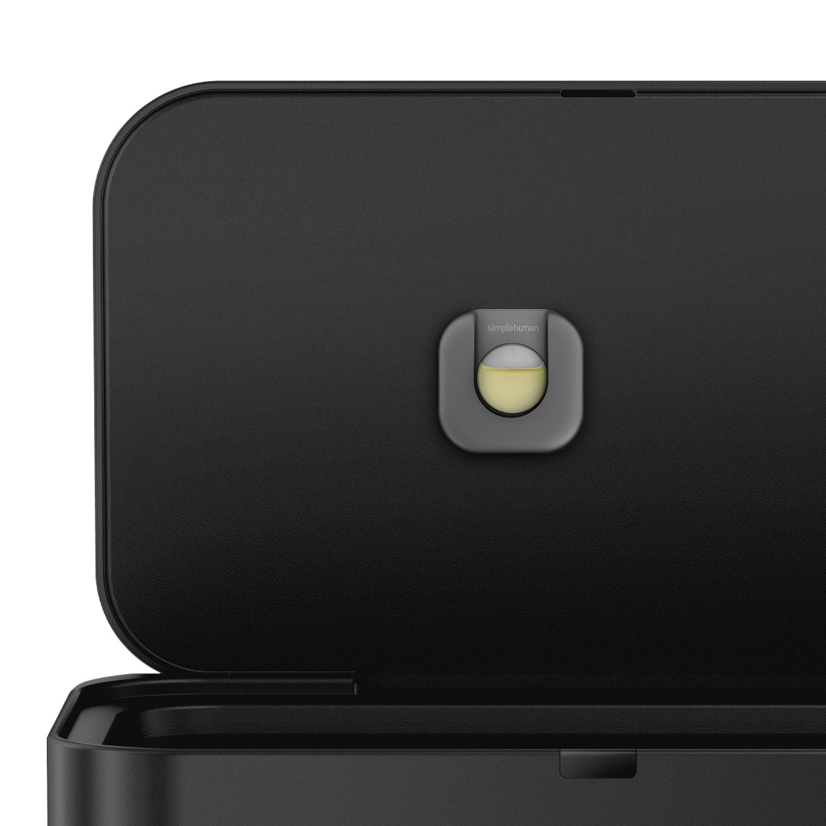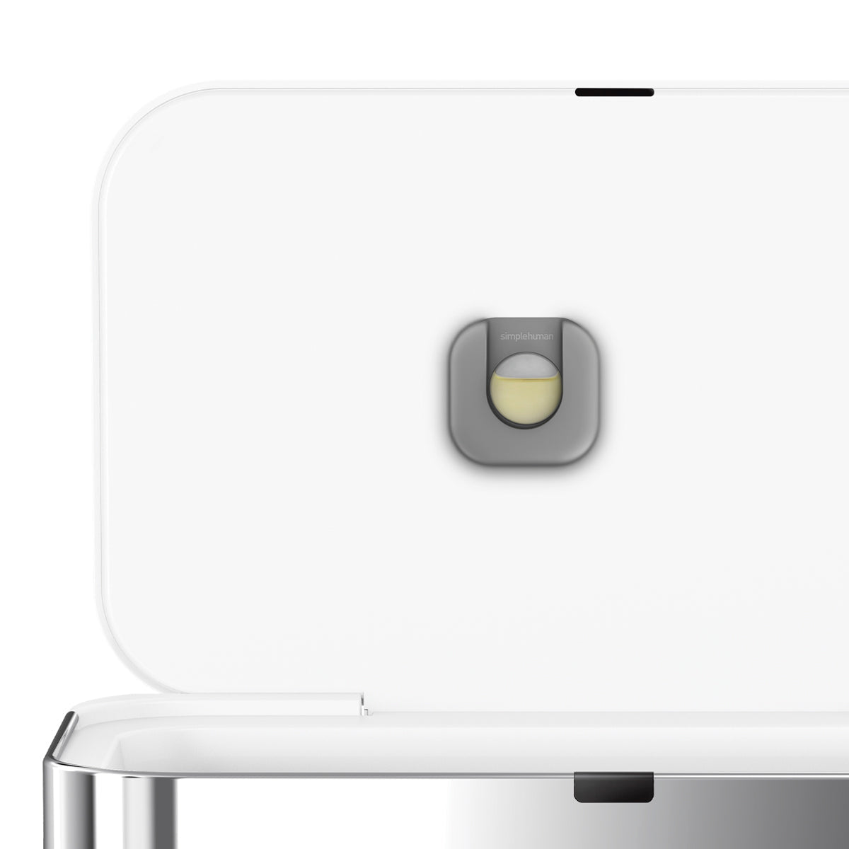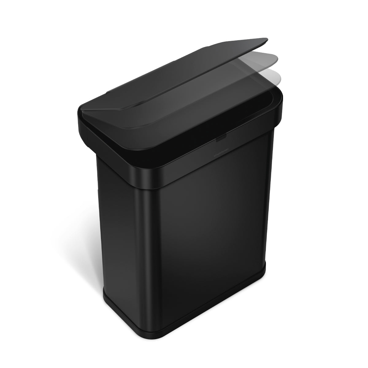 Just say, "open can" and the lid opens automatically, so throwing trash away is quick, efficient and hassle-free. You can also say, “stay open” while performing longer chores or cooking, and the lid won’t close until you say, “close can” (or it will close automatically after 10 minutes). It also has a motion sensor that opens the can with a wave of your hand and is smart enough to adapt to you and the surrounding environment — no false triggers, no unexpected lid closures. This can features our innovative liner pocket, which stores and dispenses liners from inside the can for a faster liner change. The liner rim lifts up for easy access to the liner, then closes to grip and keep it neatly out of sight. The can's stainless steel surface is protected by an invisible silver-ion coating that resists fingerprints and germs (brushed model only). ADA-compliant. Our Code Q custom fit liner fits this can perfectly — no bunching or slipping for a cleaner trash experience. Liner refill packs store easily in this can's liner pocket.
